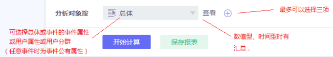 分析对象分组默认选择“总体”,最多可选择三项。当前选中为“总体”时,不能增加。
