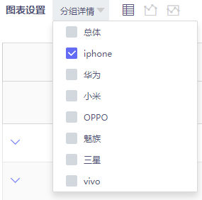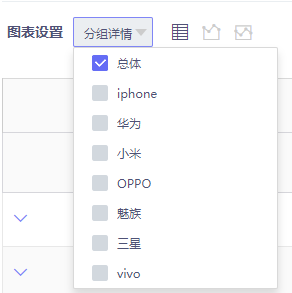 分组选中项:分组选中项为总体或可能的分组项,为单选框。该选项在图表类型为表格时无作用,仅在图标样式为数值或百分比时有效