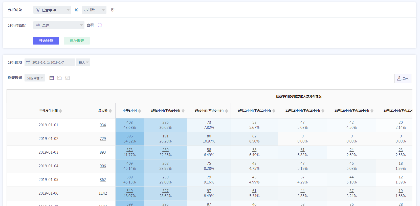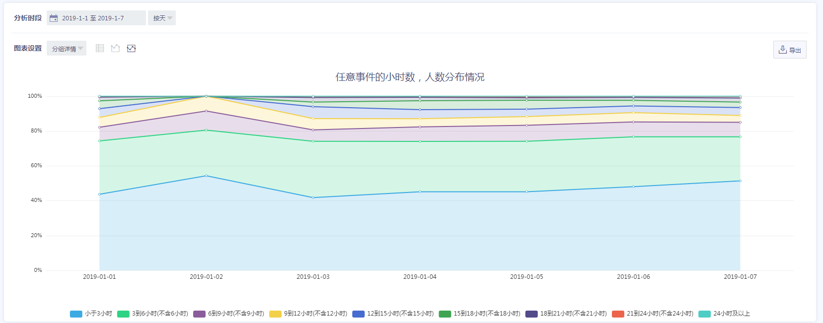 初始按总体分析,如分析一周内,每天玩家活跃小时数情况