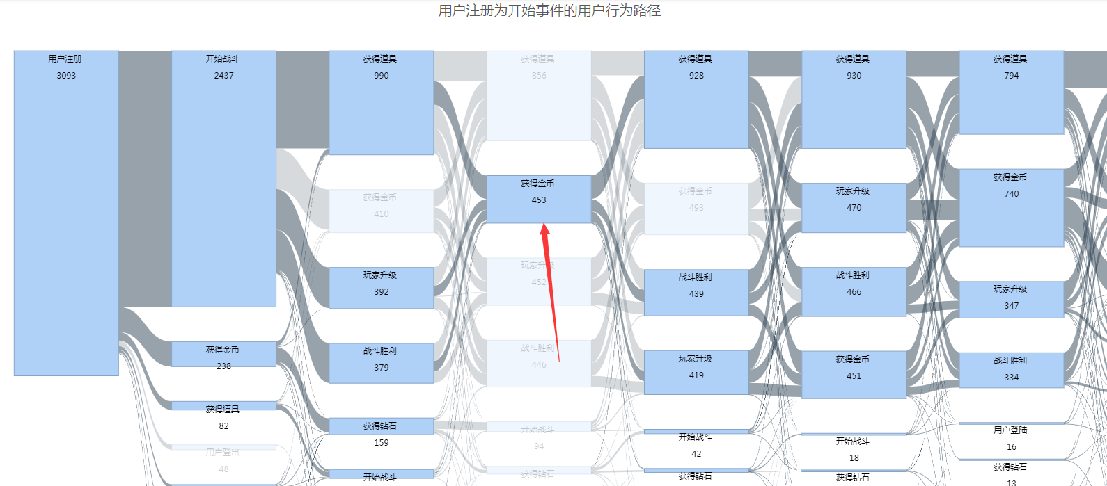 当分析起始事件时,某一步没有下层节点,则该节点会出现流失