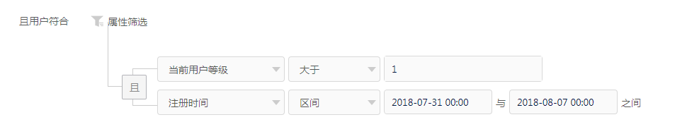 | 时间 | 注册时间 | 等于、不等于、区间、有值、无值 |