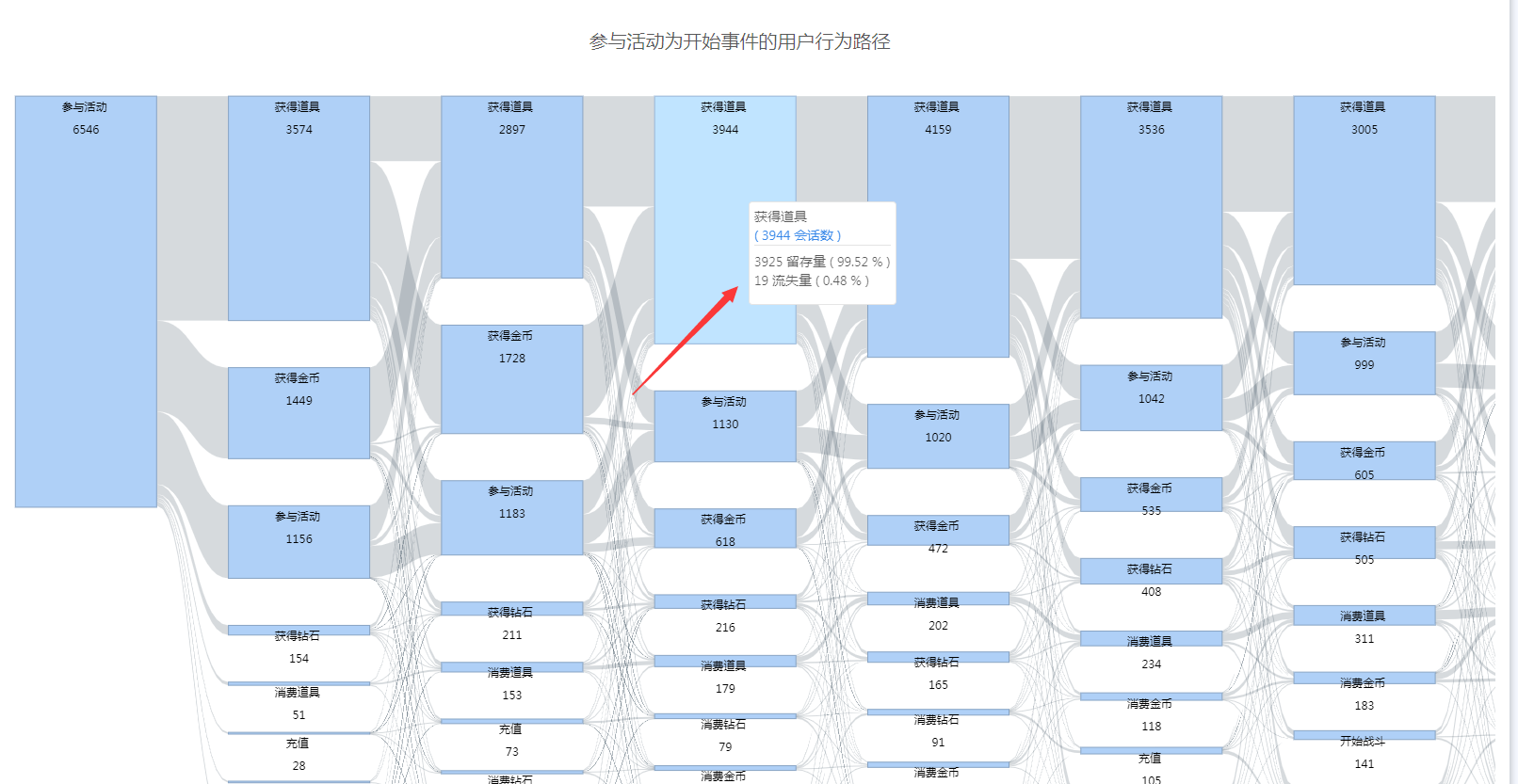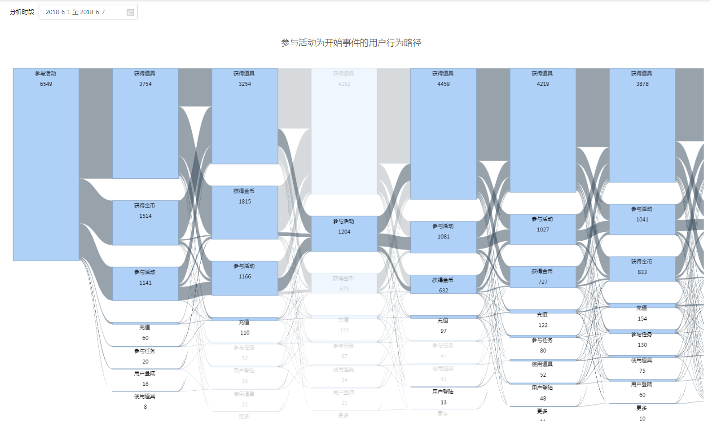 当分析起始事件时,某一步没有下层节点,则该节点会出现流失