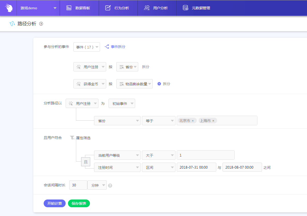 会话间隔的含义为:选取时,相邻事件的最大间隔时间。